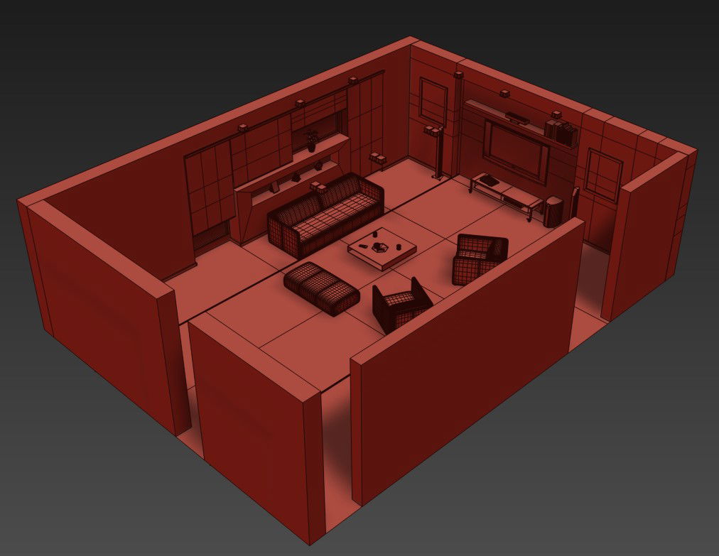 Inside View Of Drawing Room 3D MAX File Free; this is the fully furnished view of drawing-room includes sofa set, tv unit, paneling, center table, and other things related to drawing room 3D MAX File Free.