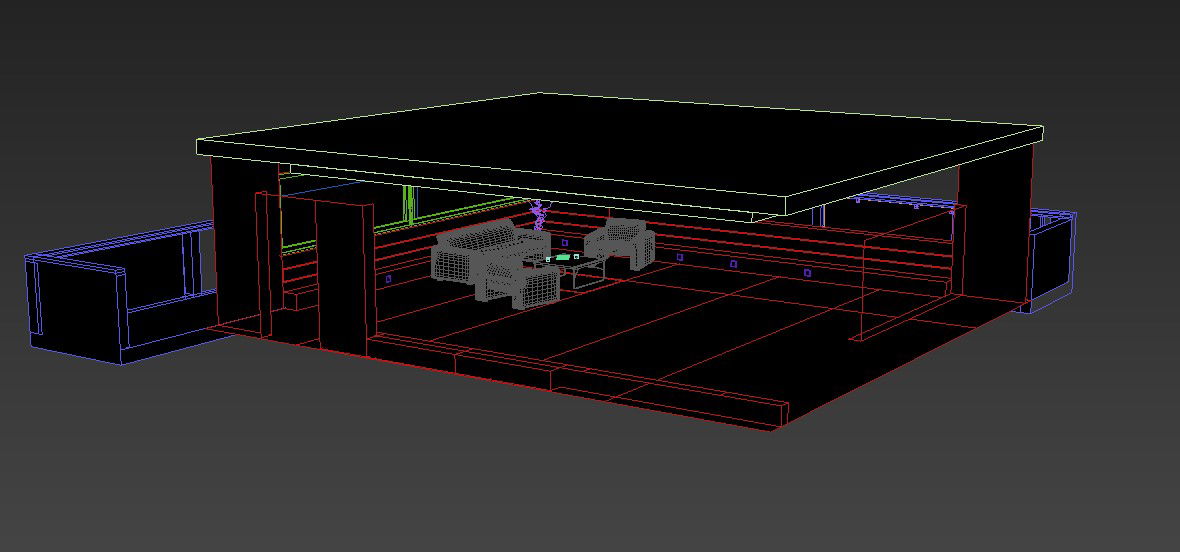 Isometric View Of Drawing Room In 3D MAX File Free; this is the view of drawing-room includes sofa set, tv unit, wall paneling, flooring detail, balcony, and much more 3D MAX File Free,