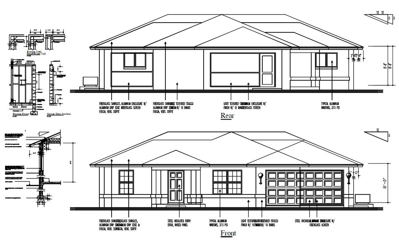 Single Family House Elevation Design DWG File