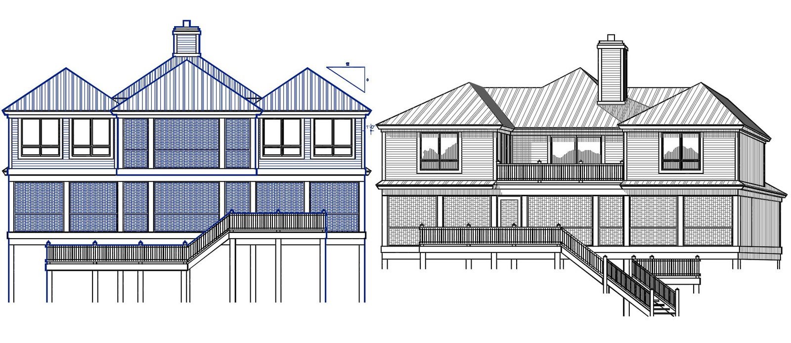 Front elevation and side elevation design AutoCAD drawing download for free.