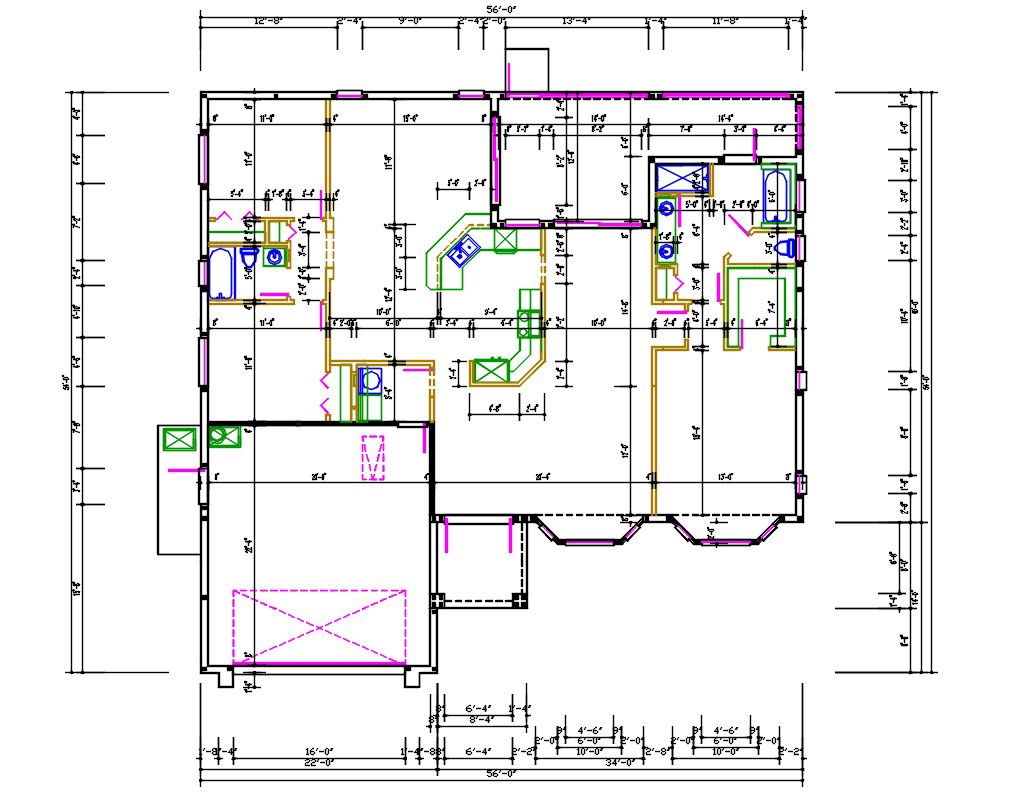 House Layout Plan With Dimension DWG File; the architecture residence house ground floor layout plan with all dimensions and description detail in AutoCAD format. download the house plan DWG file and apply this drawing in your new project.
