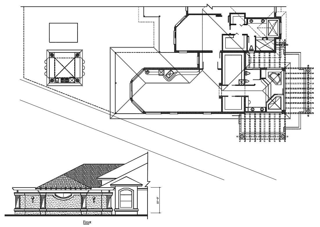 Roof Working House Plan DWG File; download AutoCAD file of residence roof section floor plan and elevation detail with roof structure plan.