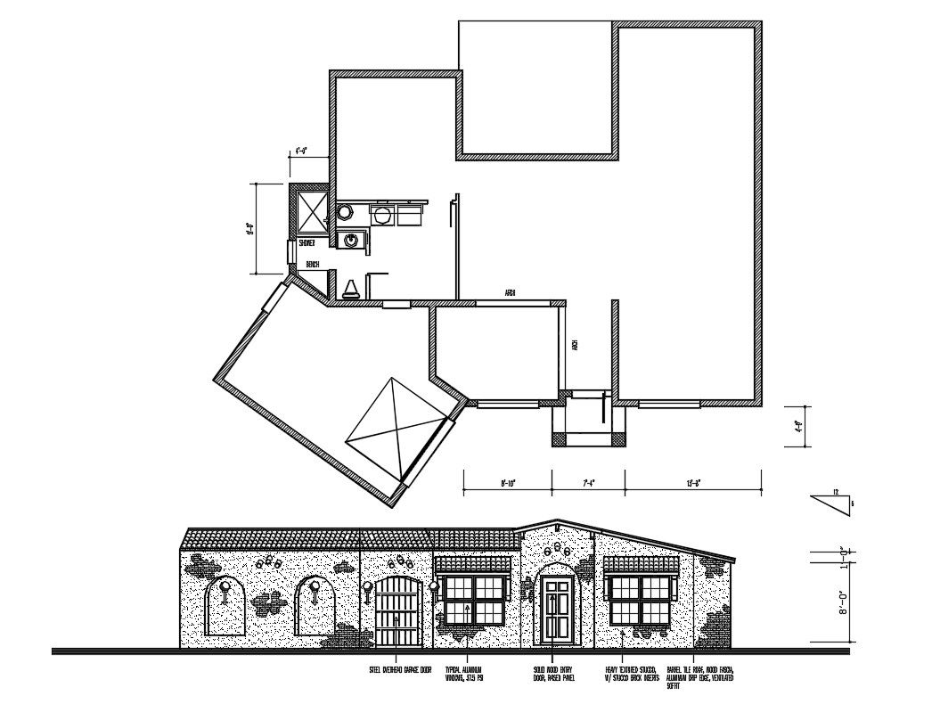 House Plan and Elevation Design DWG File; 2d CAD drawing of residence house ground floor plan and elevation design. download DWG File of house plan with dimension details.