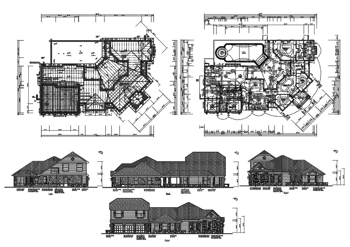 Attic Bungalow Project AutoCAD File; the architecture attic bungalow plans CAD drawing includes roof section floor plan, electrical layout plan, and all side elevation design with dimension detail. download AutoCAD bungalow file and a collection of fabulous ideas that would serve as a good source of inspiration CAD presentation.