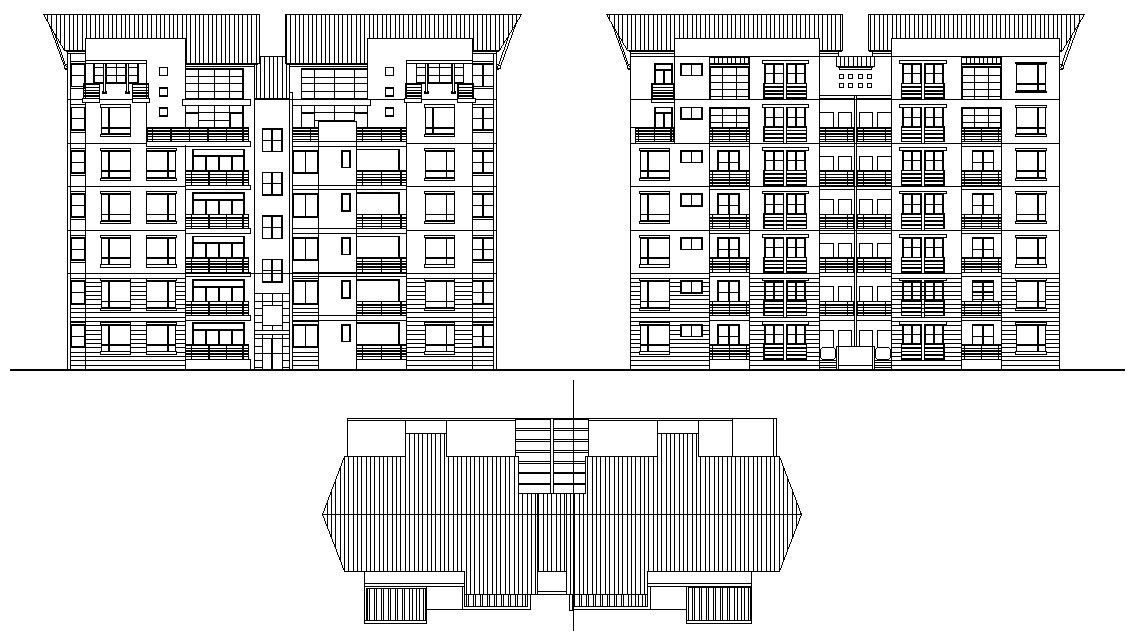 Front elevation and rear elevation design of residential housing apartment design file download for free.