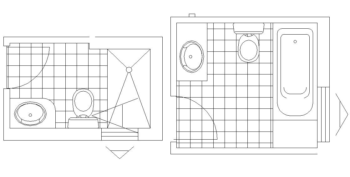 Bathroom design layout plan that shows sanitary cad blocks details of washbasin, water closet, bath-tub with bathroom flooring tiles details download file for free.