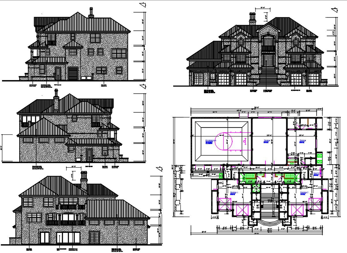 Attic House Project AutoCAD file; the architecture attic house ground floor layout plan and building elevation design with dimension detail in AutoCAD format. download AutoCAD file and a collection of fabulous ideas that would serve as a good source for CAD presentation.