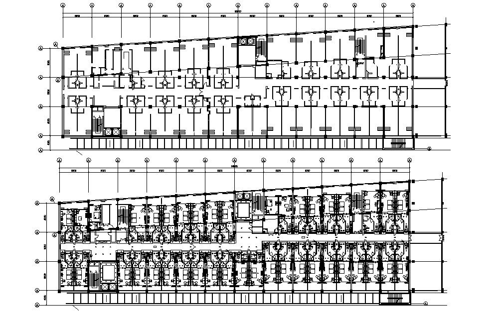 Hotel Building Design With Furniture AutoCAD File; planning of hotel with furniture detail, dimension, texting, centerline CAD file.