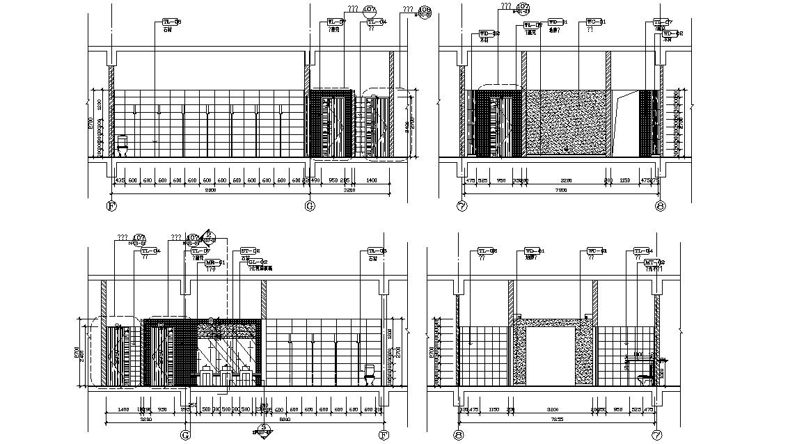 Autocad drawing details of sanitary public toilet section that shows sanitary blocks details along with plumbing blocks, dimension set, and various other units details download file for free.