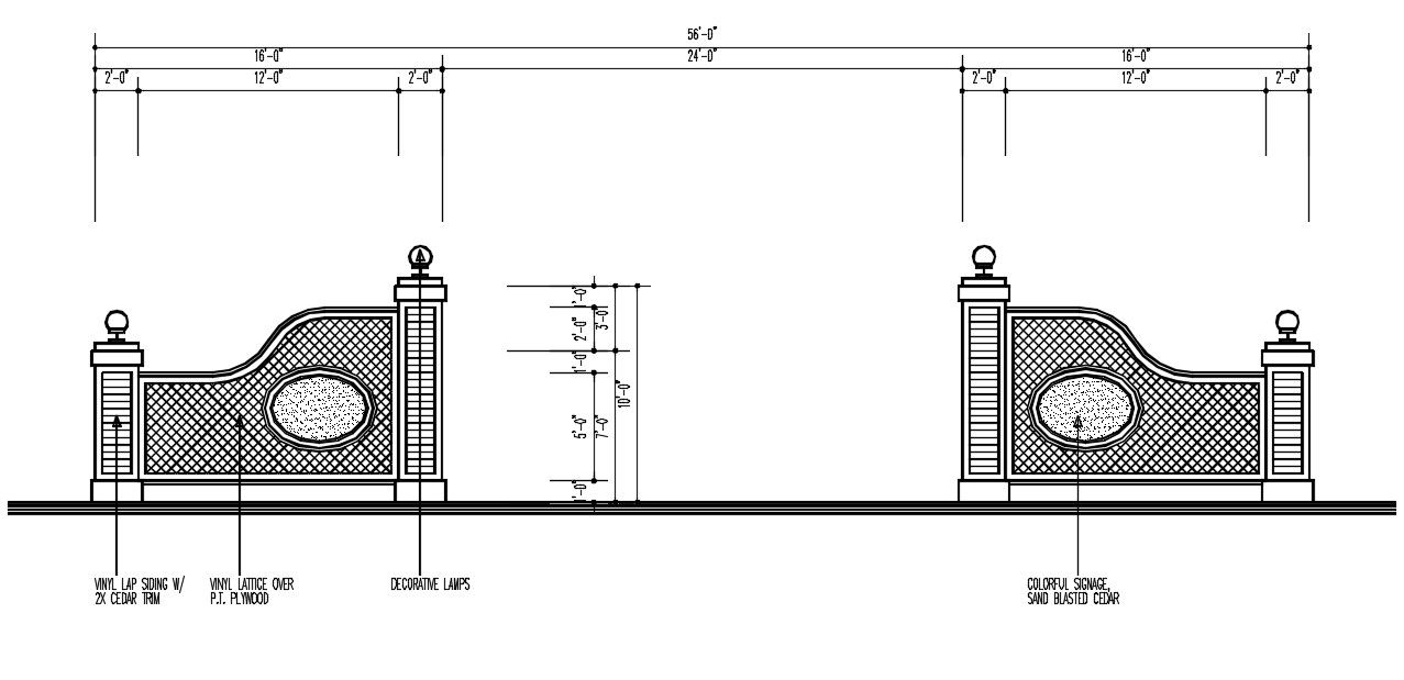Compound Wall Design DWG File; download free AutoCAD file of compound wall elevation design with dimension detail.