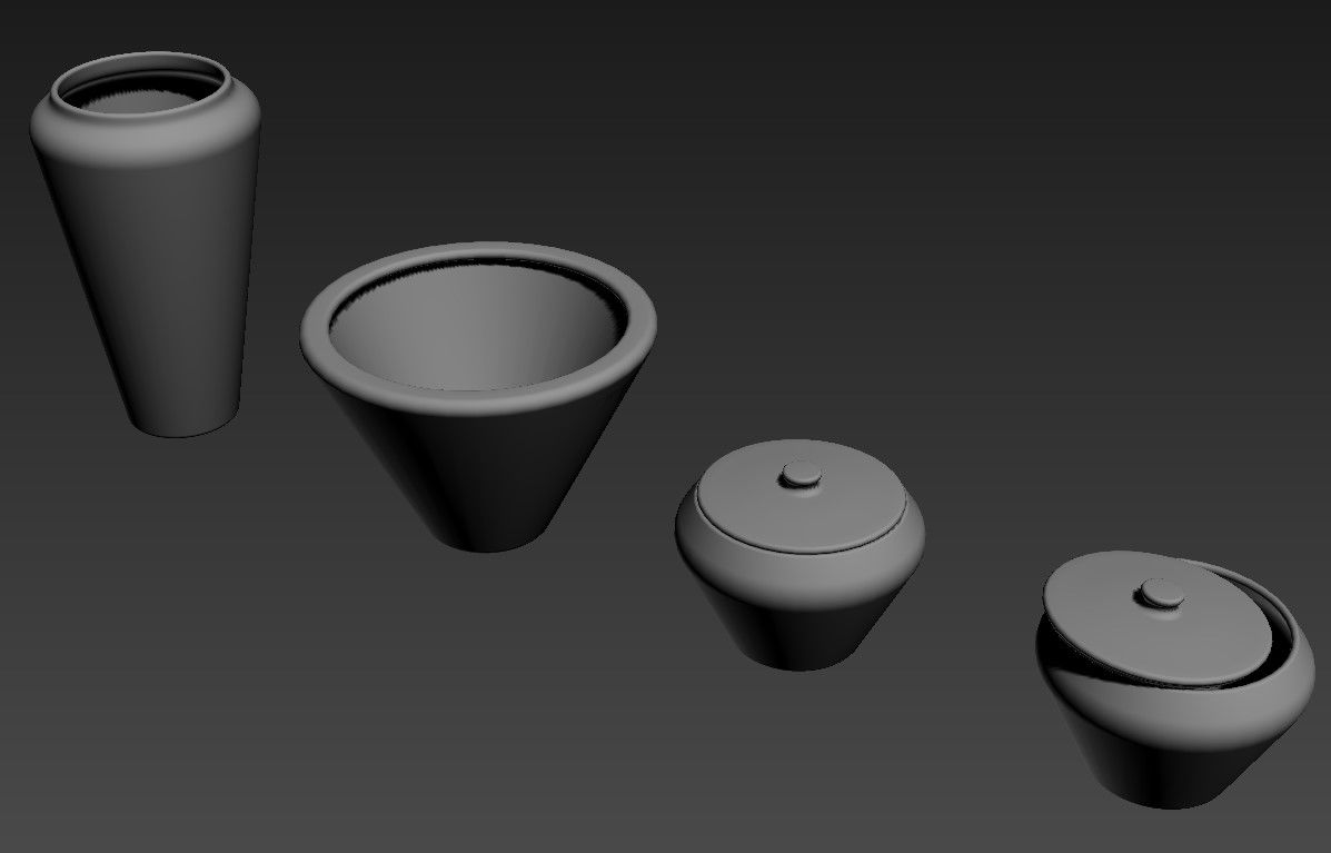 Different Type Of Mud Vessels In 3D MAX File Free; basic rendered mud vessels In 3D MAX file free.