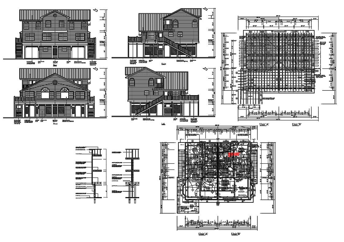 Attic House Project Architecture Plan; download DWG file of attic house 2 storey building elevation design, wall section, electrical layout and floor plan with dimension details.