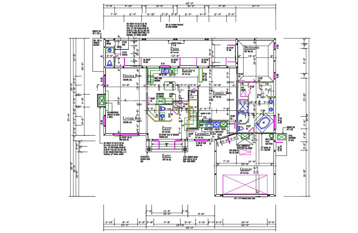 1 BHK House Plan With Vastu DWG File; the architecture residence house layout plan CAD drawing includes 1 bedroom, kitchen, dining room, living room, family room, and garage with all dimension details. download AutoCAD file of the house ground floor plan.