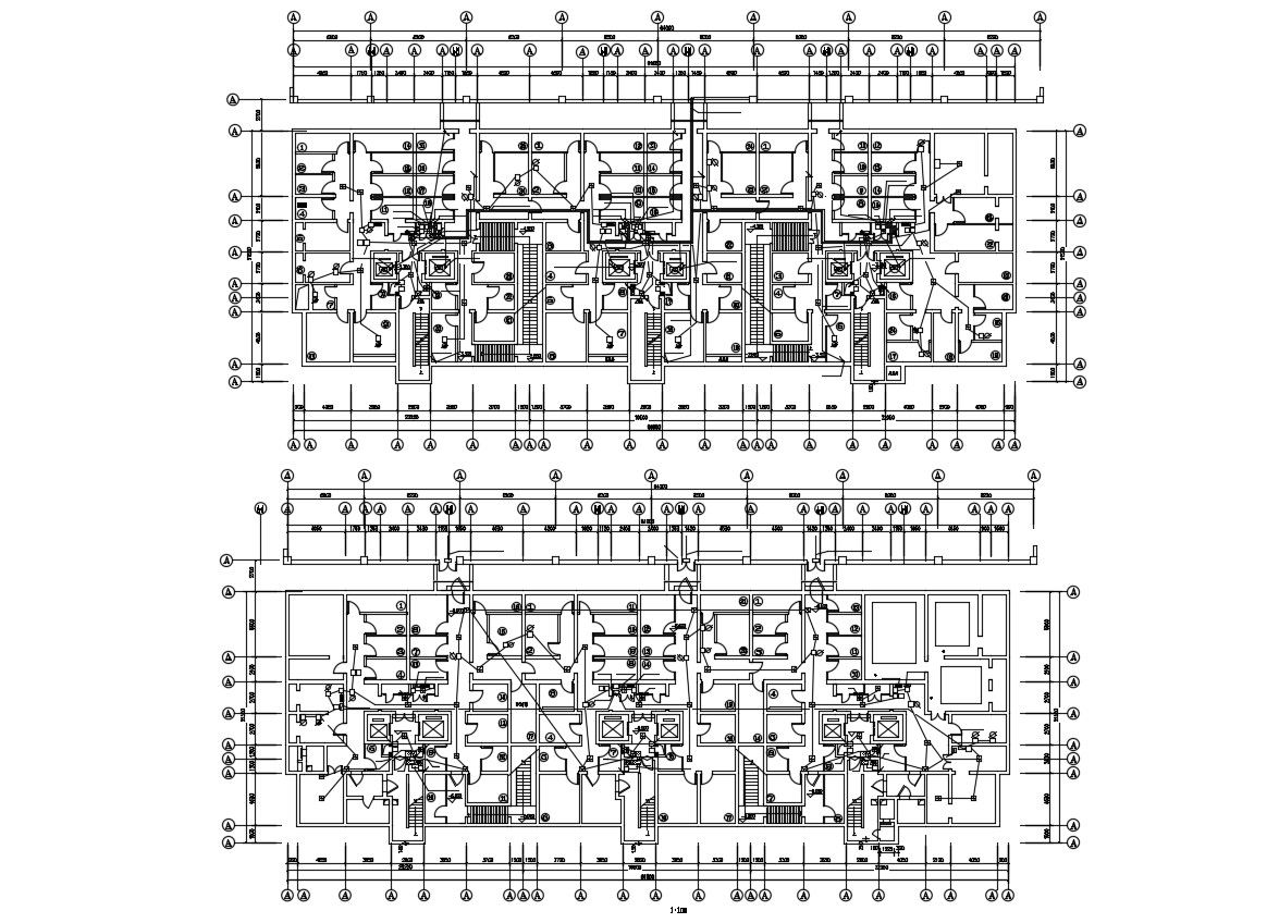 CAD drawing details of a commercial building design plan that shows building dimension working set details, building floor level, centerline, staircase, rooms cabins, and various other blocks detailing download file.