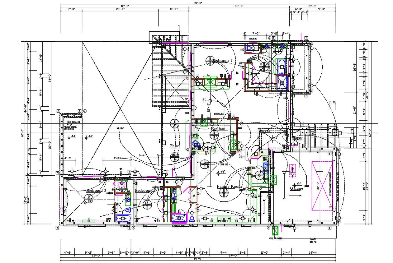 3 BHK House Electrical Layout Plan; 2d CAD drawing of house electrical layout plan includes witing detail, false ceiling, fan, and switchboard connection point. download AutoCAD file of the house electrical layout plan.