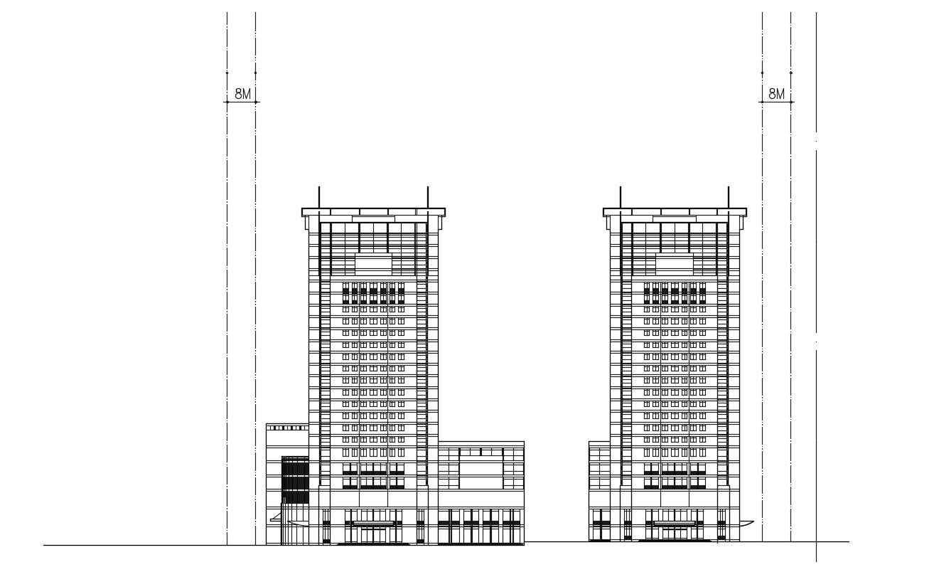 2d CAD drawing details of commercial building hub design front elevation and side elevation download file for free.