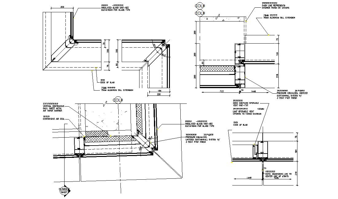Insulated Glass Curtain Wall DWG File; insulated glass unit-see elevations for glass type, unitized curtain wall system like Four glass types: two insulating glass units (IGU) and two vacuum