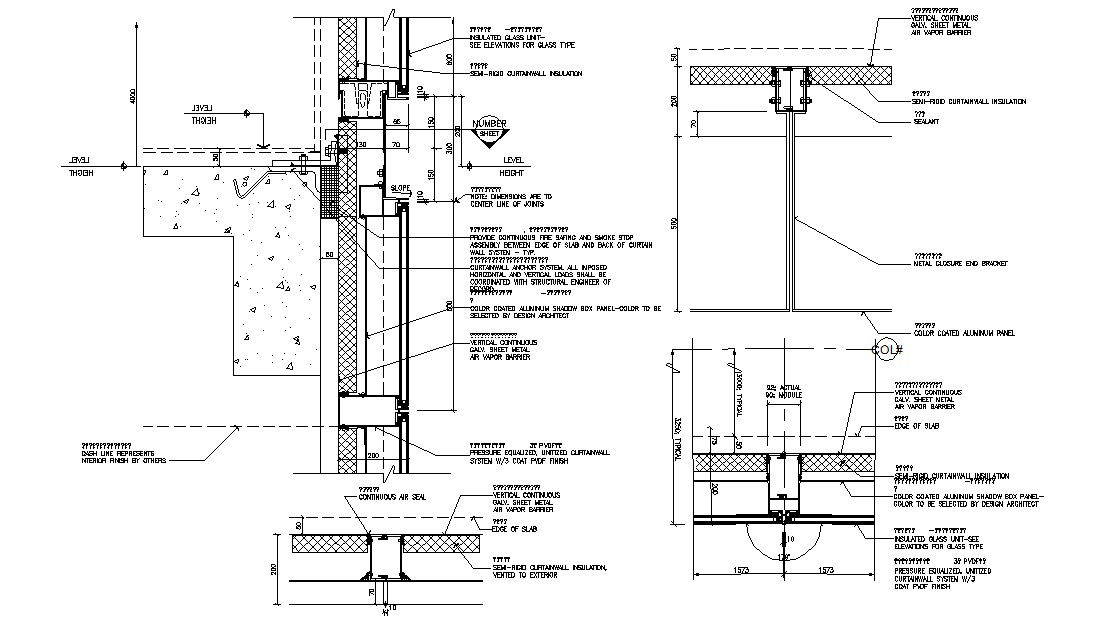 Curtain Wall Influences Design DWG File; 2D CAD drawing of curtain wall installation stature detail and Curtain walls are the first structural element that subjected to wind loads and which control wind loads for the structural design of the curtain walls.