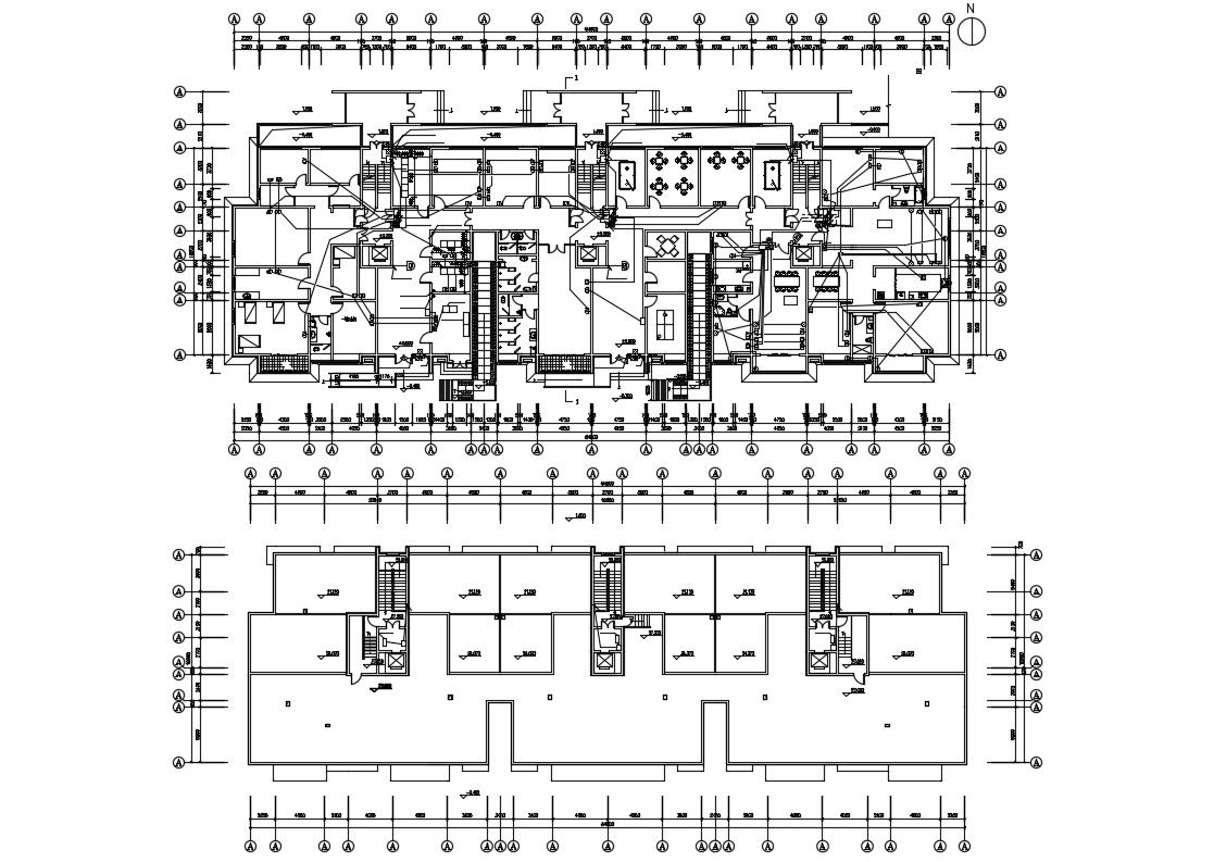 Commerce building design plan which shows building dimension working set, centerline, building room, cabins, room dimensions, floor level staircase, and various building amenities detailing download AutoCAD drawing.
