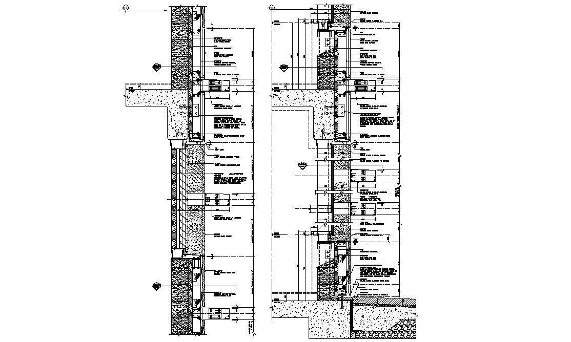 Curtain Glass Wall Insulation Drawing; the glass insulation rigid insulation with black fabric cover, color coated aluminum panel rain screen and coated built-up aluminum projected panel band. download AutoCAD file of curtain glass wall section CAD drawing.