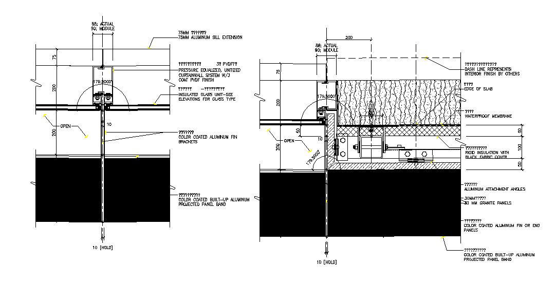 Insulated Glass Unit CAD Drawing; download free AutoCAD file of Curtain Glass Wall Insulation detail with description and dimension detail.