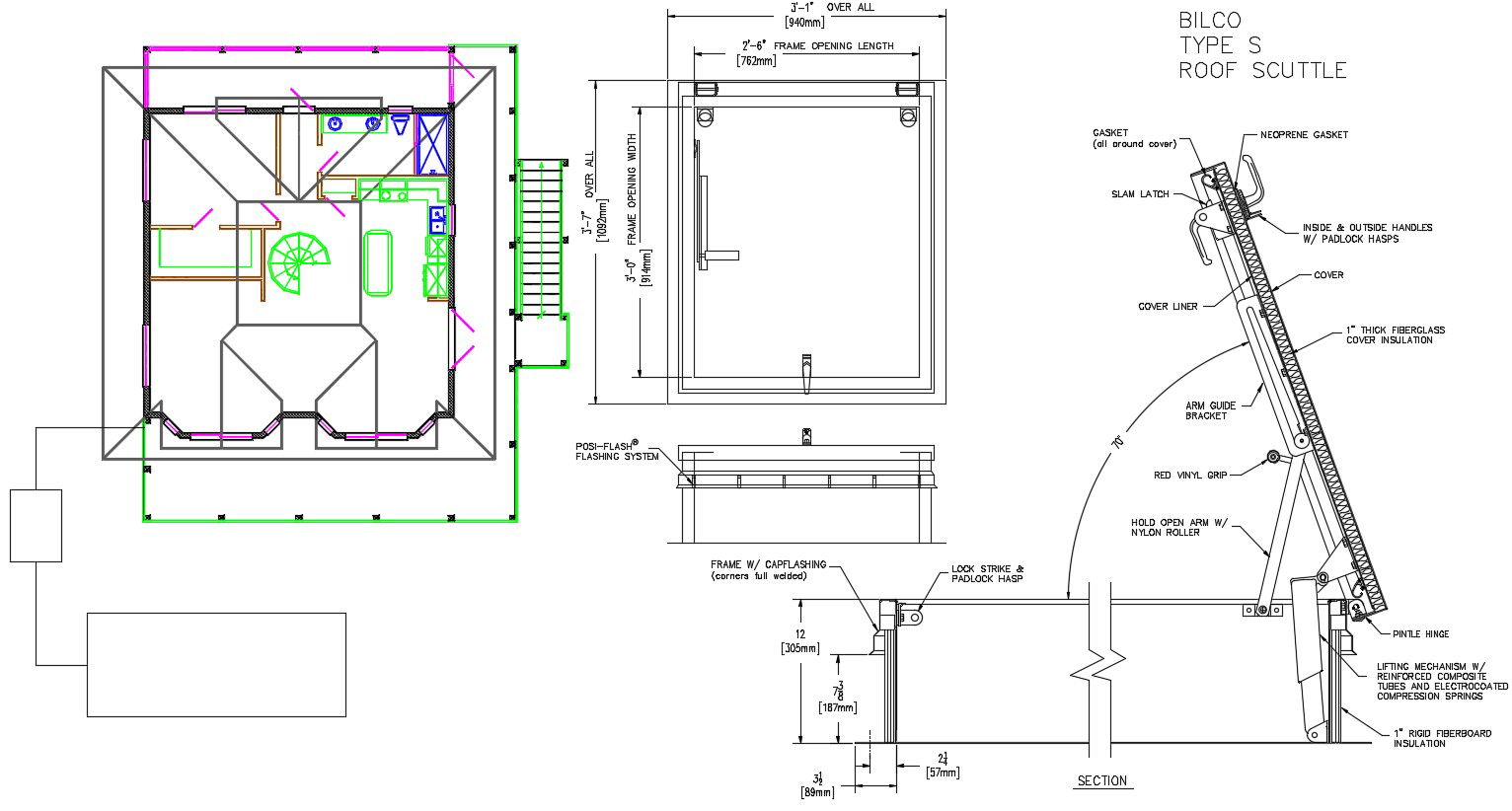 Architectural Roof Section DWG File; this is the detail of the roof section includes dimension, texting, floor plan, and furniture plan in AutoCAD format.