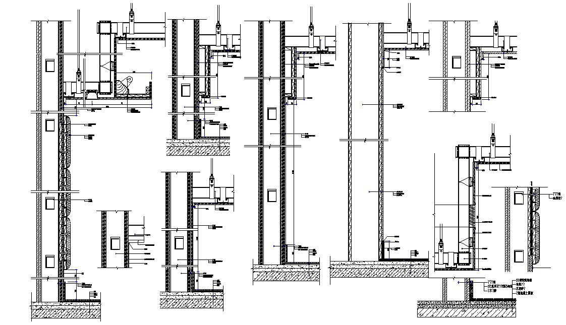 Wall Section Free Download DWG File; 2d CAD drawing of concrete floor plan and curtail glass wall section with insulation detail in AutoCAD format.