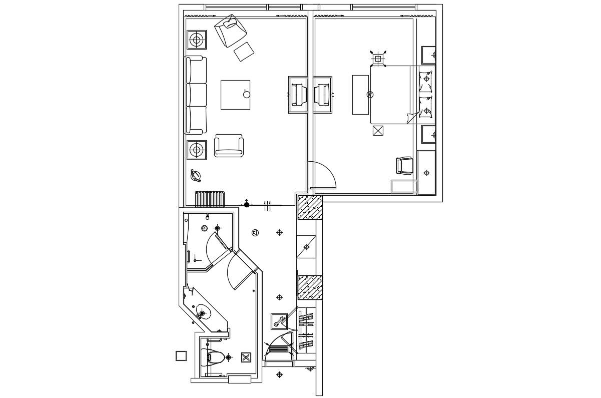 Download Bedroom Free CAD Drawing; download free AutoCAD file of bedroom drawing shows living room, master bathroom with closet and bedroom.