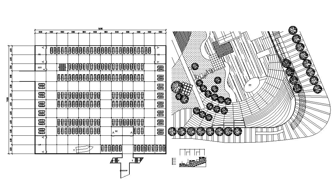 Download Ground Floor Car Parking AutoCAD File Free; this is a ground floor car parking layout with some landscape detail drawing, CAD file free download.