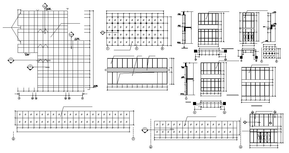 This AutoCAD DWG file delivers a detailed glass facade design showcasing elevation views, wall sections, and plan layouts, complete with annotation and text detailing. The design is tailored for corporate architecture, emphasizing modern facade solutions, glass curtain walls, and structural integration. Architects and facade designers can use this as a reference or base model to adapt to their own projects, adjusting dimensioning, material specifications, glazing layouts, and structural support.