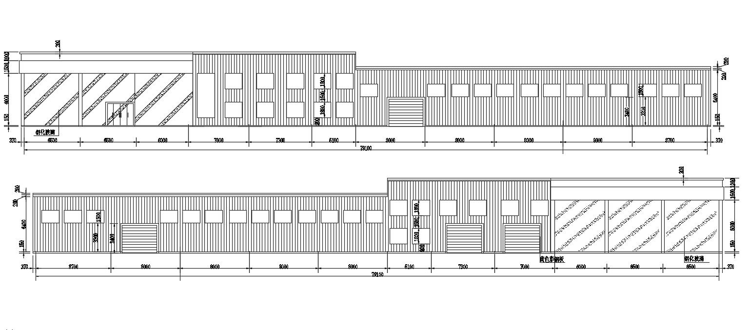 Factory Building Two Elevation AutoCAD File Free; this is the simple elevation of the factory with dimension, hatching, CAD file free download.