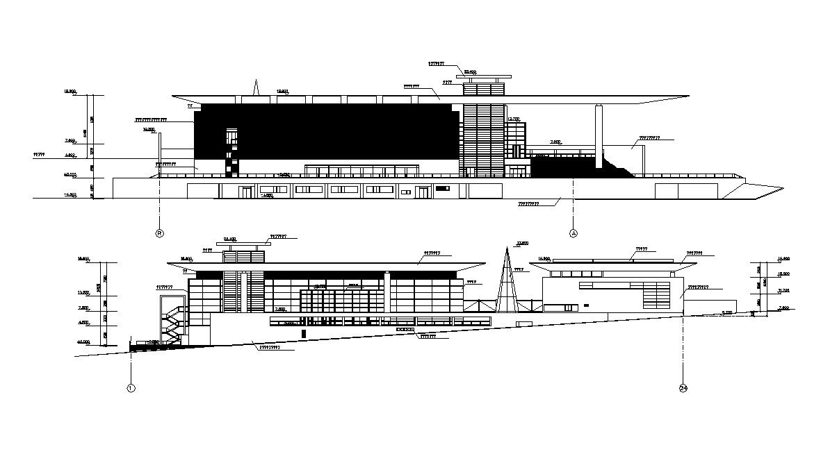 Download The Commercial Building Elevation And AutoCAD File free; this is the elevation of a commercial building, it's a huge big canopy, floor levels, dimension, and other more things.in CAD format.