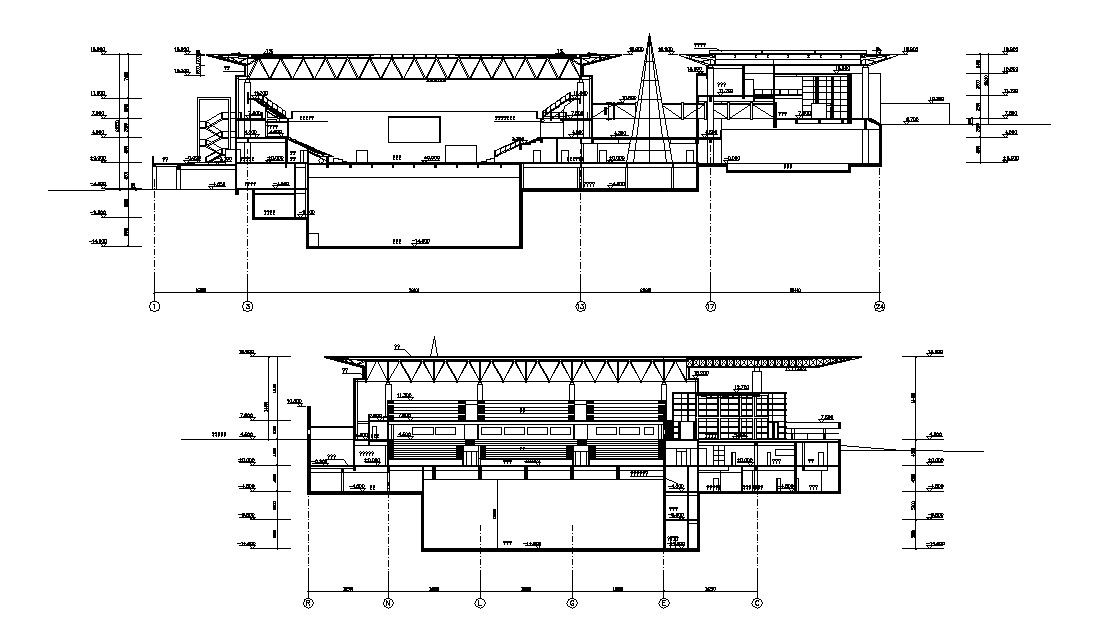 Truss Section Of Stadium with structure Design AutoCAD File Free Download; this is the truss roof section of the stadium with a centerline, working drawing, texting, huge roof detail in CAD format.