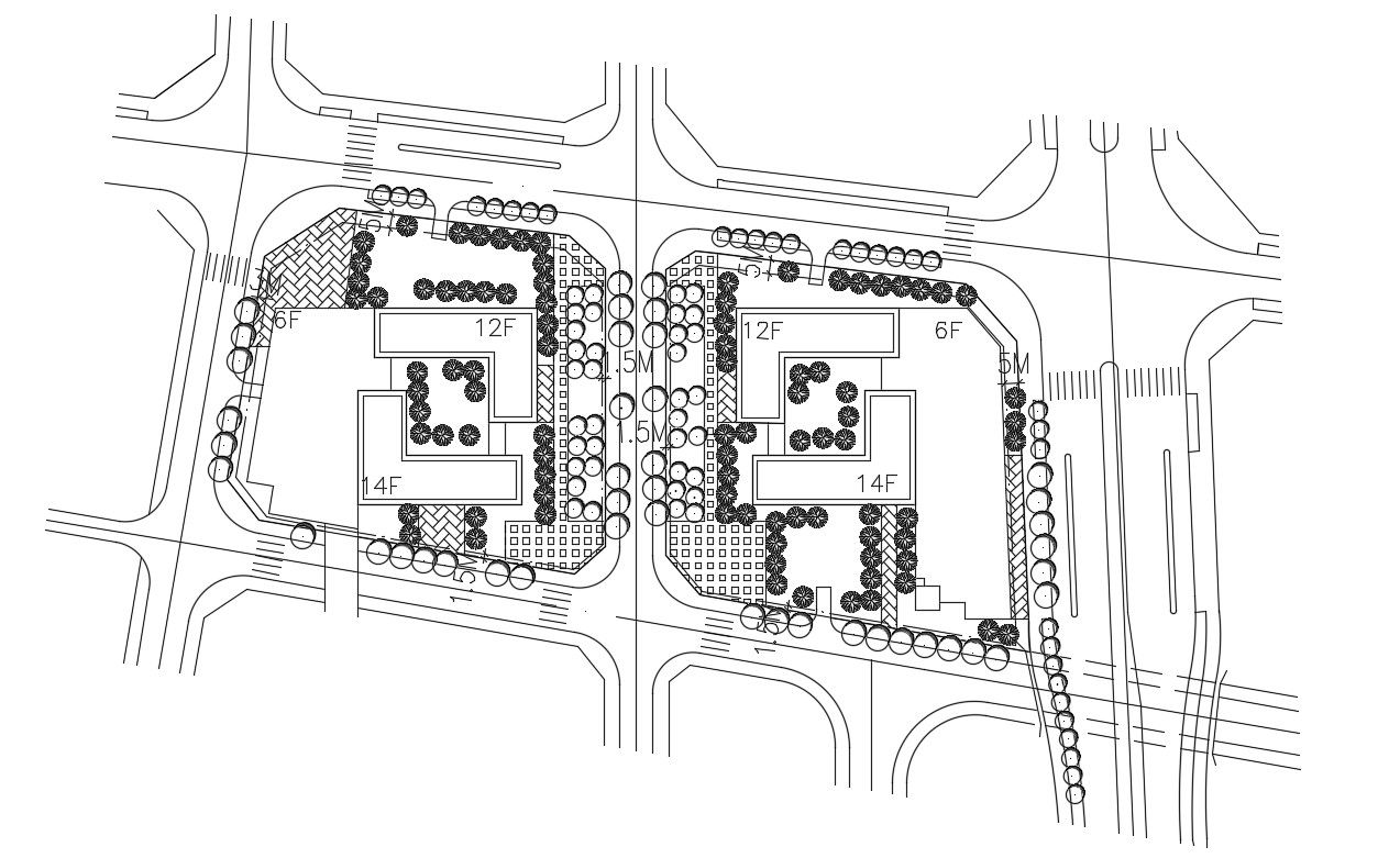 Layout plan design of residential area planning that shows road network details, parking space area, landscape, and various other units details download a CAD file.