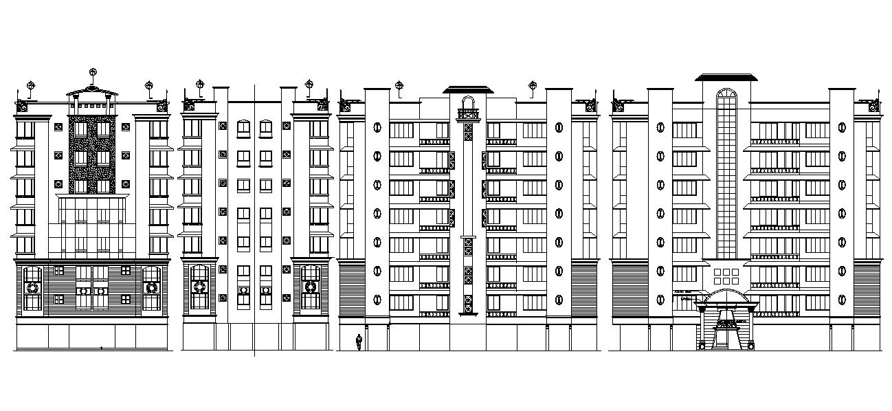 Residential apartment front elevation design AutoCAD Drawing download file for free.