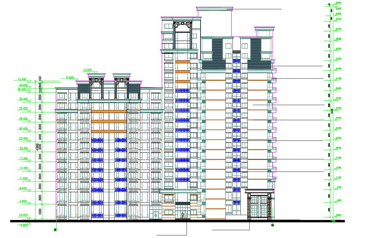 Download The Traditional Elevation Of Apartment With Floor Level DWG File