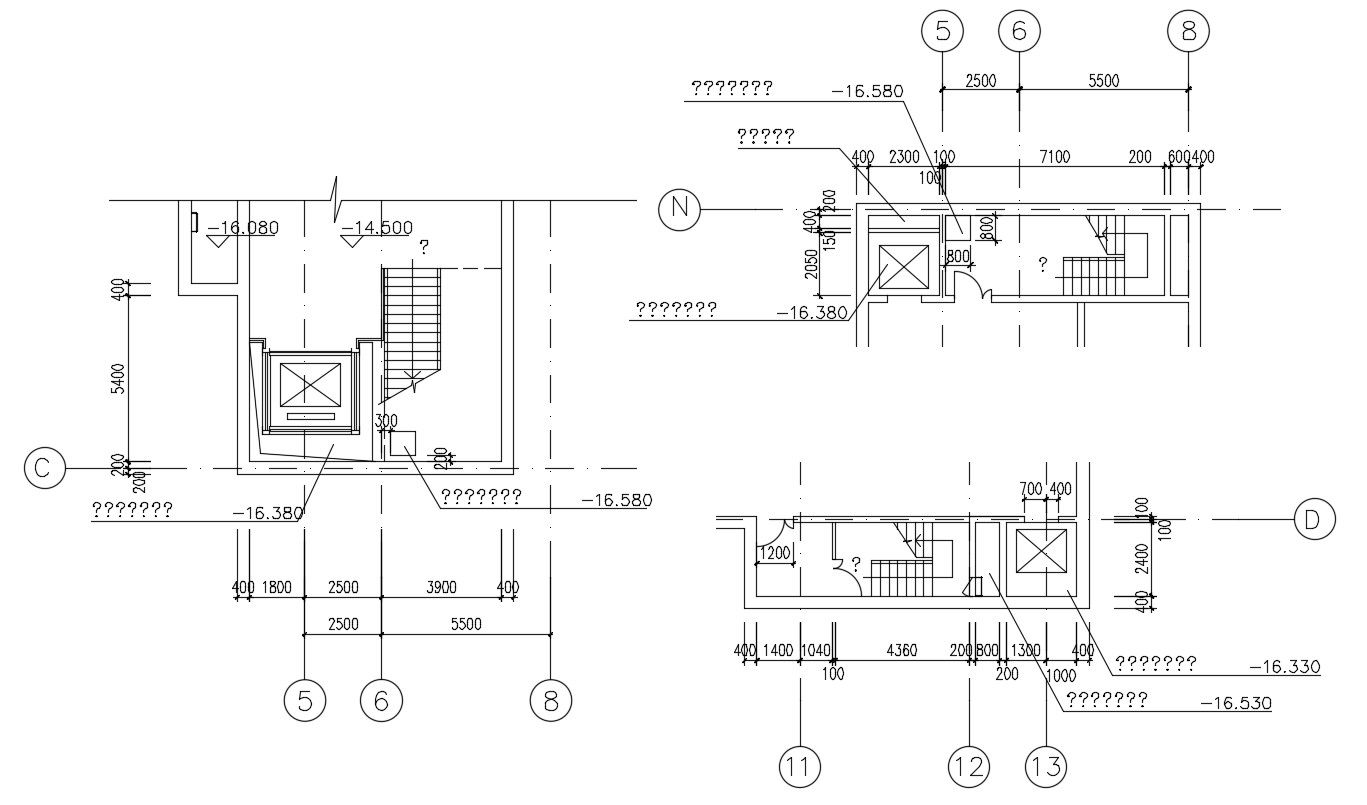 Elevator and Staircase CAD Plan with Layouts and Section Details