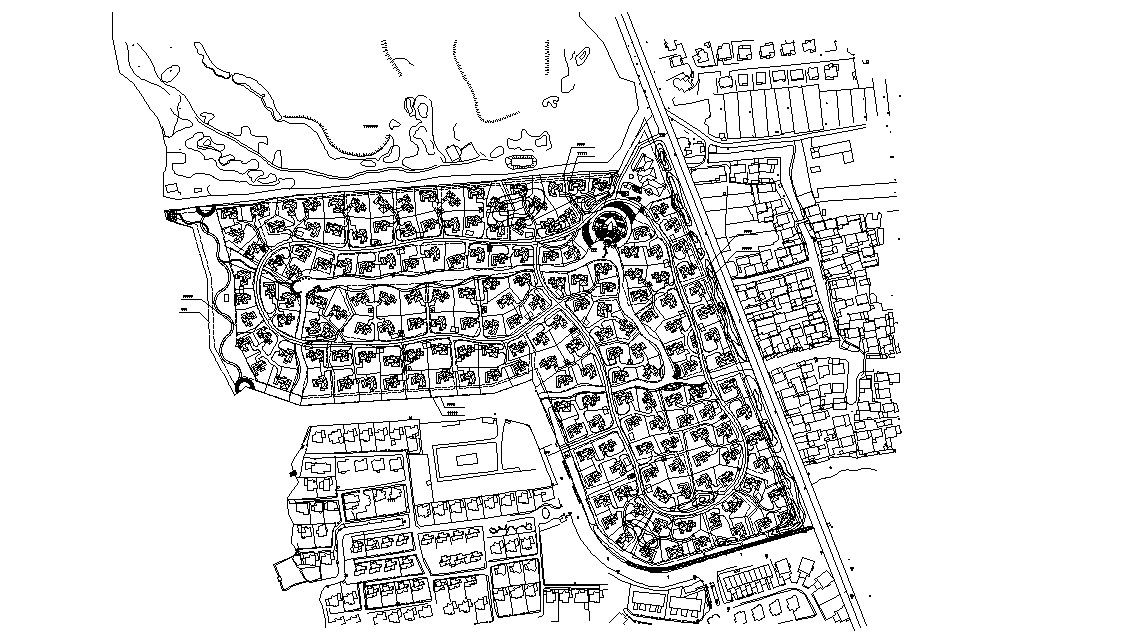 Urban Town Planning CAD drawing; 2d CAD drawing of urban plan shows landscaping details in area, road networks, existing building units, common plot, and various other details download file for free.