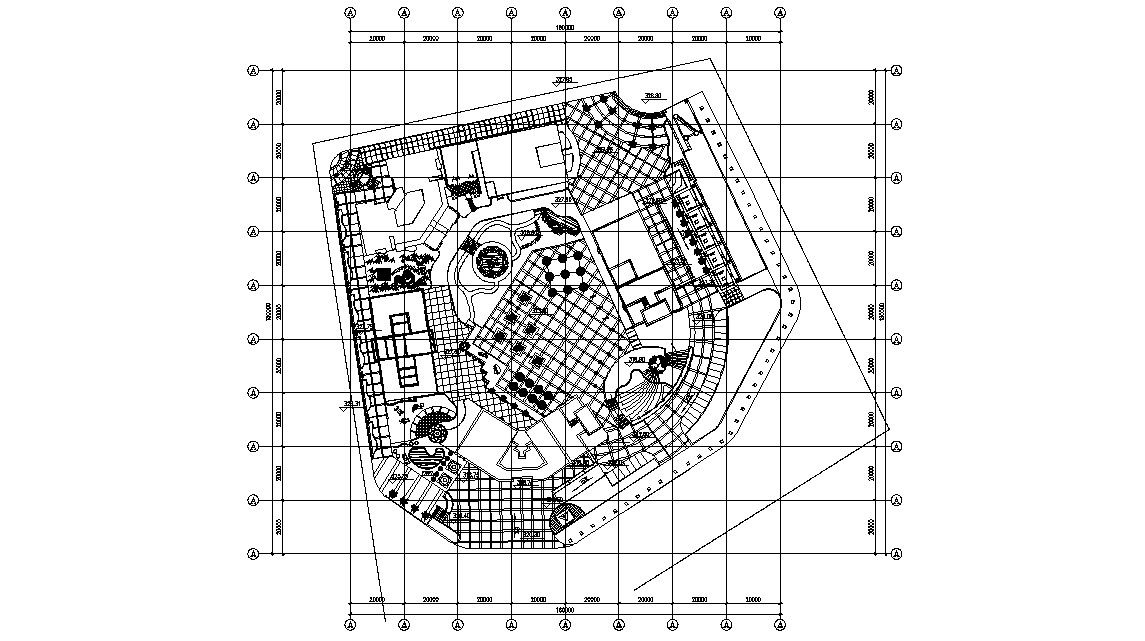 Clubhouse Area Plan DWG File; download free AutoCAD file of clubhouse area CAD drawing includes landscaping design, plotting, fountain, and dimension details.