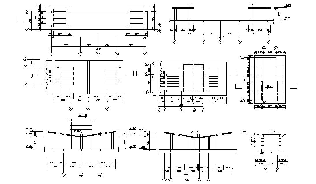 Two-sided hurdle tool plaza design elevation drawing that shows tool plaza room design details along with dimension set details, download CAD drawing for free.