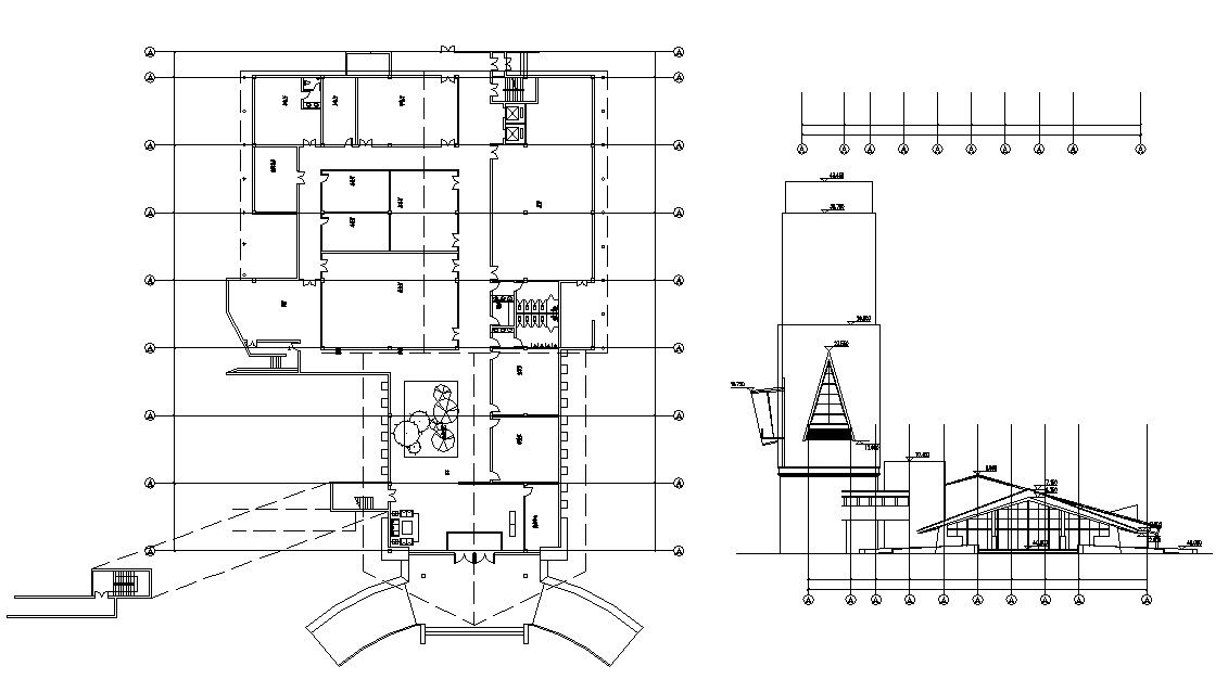 Commercial building design layout plan along with dimension working set, centerline design, building front elevation, and various other works details download a CAD file for the detailed presented work plan.