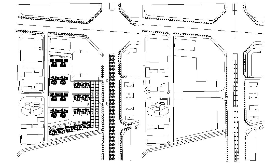 2d CAD drawing details of commercial building area design master layout plan that shows existing building details in the area along with nearby road networks, landscaping, and various other details download file for free.