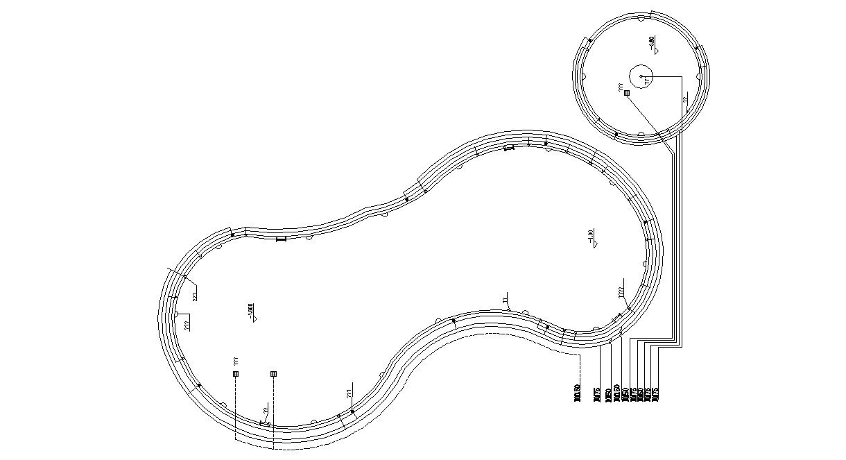 2d CAD drawing details of swimming pool design plan that shows swimming pool shape design download file for free.