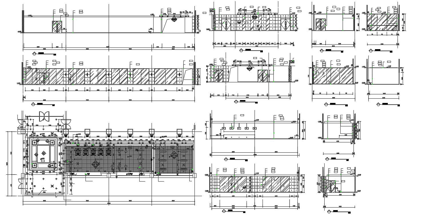 Office Floor Elevation Design DWG File; 2d CAD drawing of office floor layout plan and elevation design shows glass partition and entrance door with dimension detail in AutoCAD format.