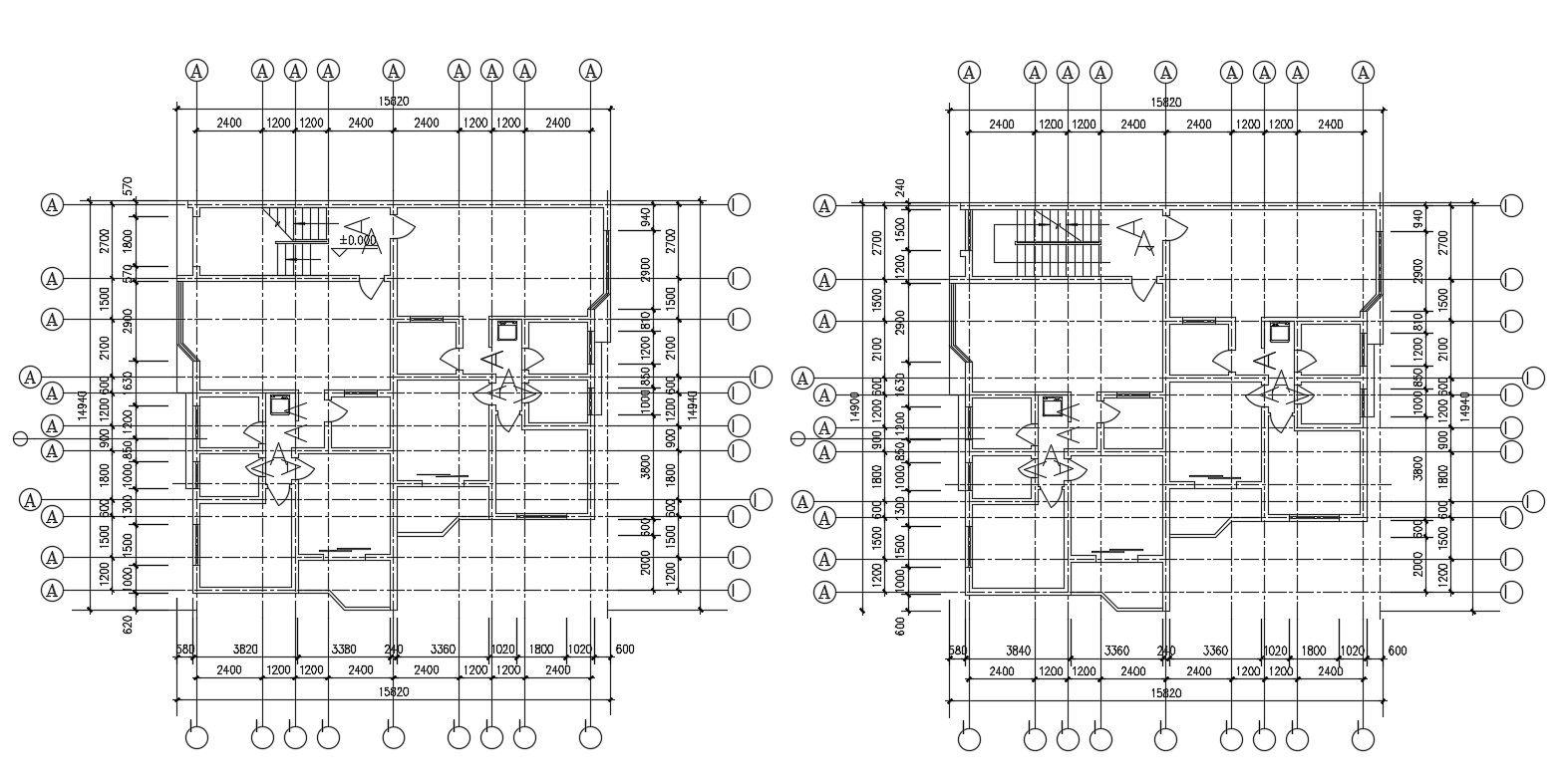 Bungalow Layout Plan With Working Drawing AutoCAD File; this is the bungalow planning with the centerline, dimension, door-windows, in CAD drawing.