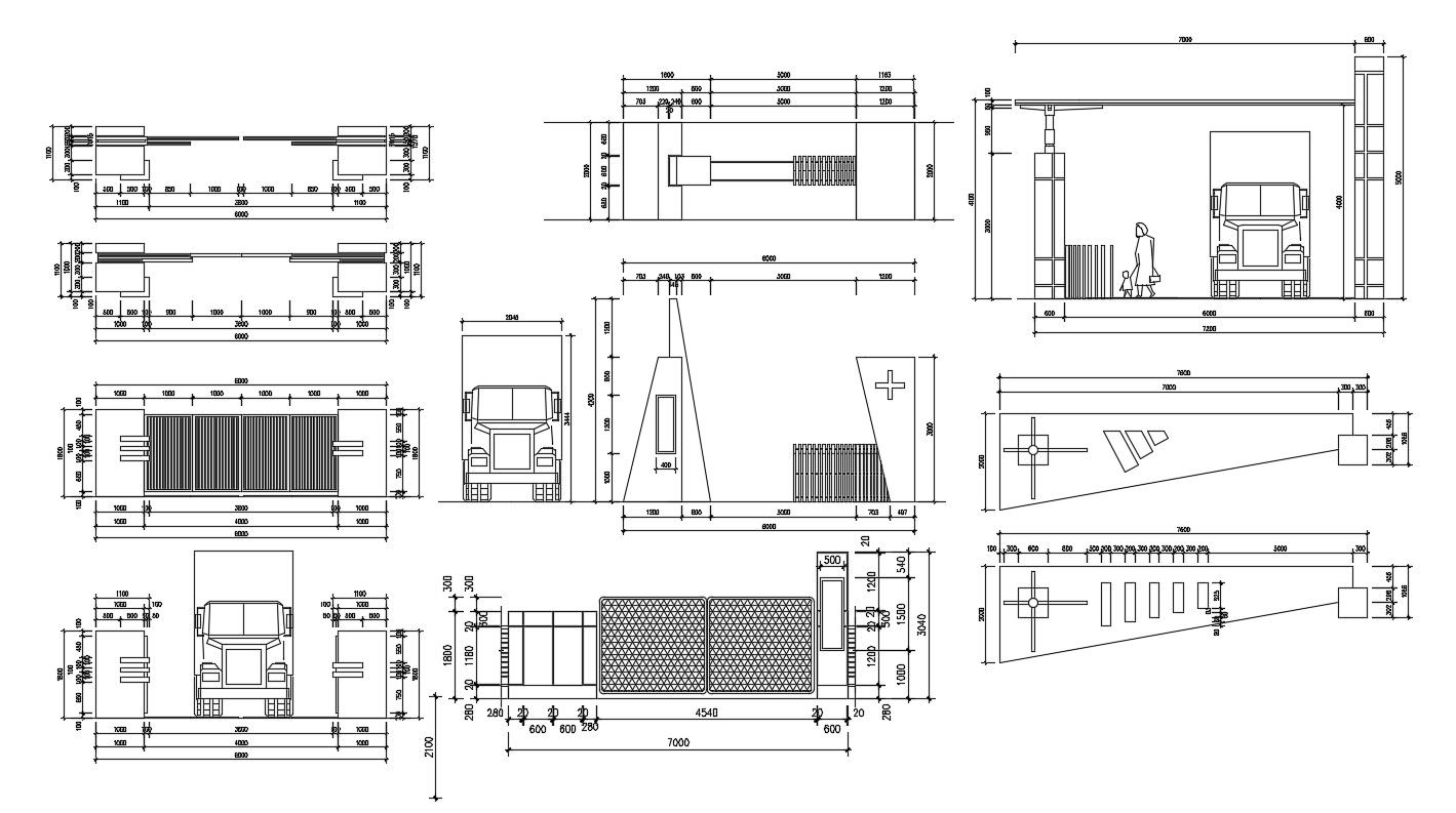 Main Gate Design AutoCAD File; this is the different types of main gate detail drawing with plans, elevation, working drawing, gate design, DWG file download.
