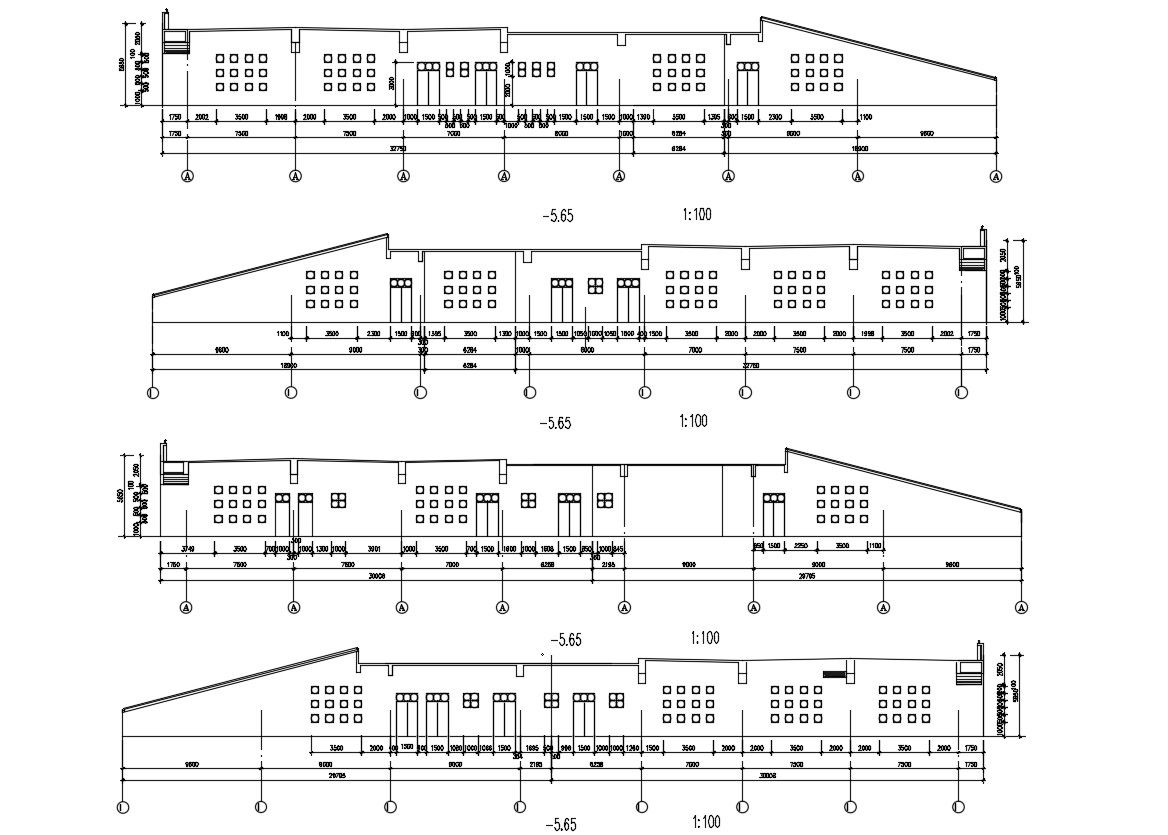 Factory Building Elevation Free CAD Drawing; download free DWG file of factory building elevation design with dimension detail in AutoCAD format.