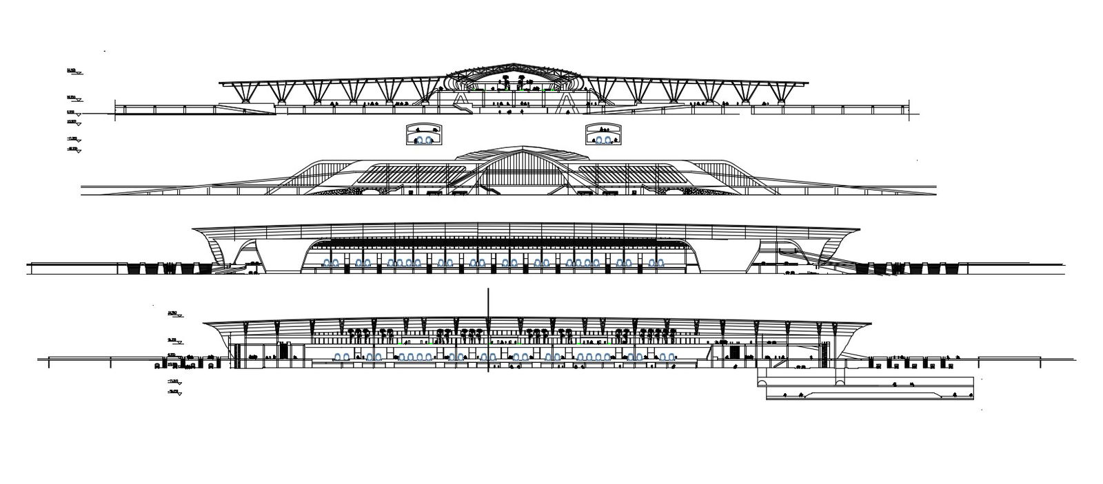 Download Modern Elevation Of Stadium AutoCAD File; this is the contemporary elevation of the stadium with open canopy, section detail, compound wall, and much more detail, in DWG format.