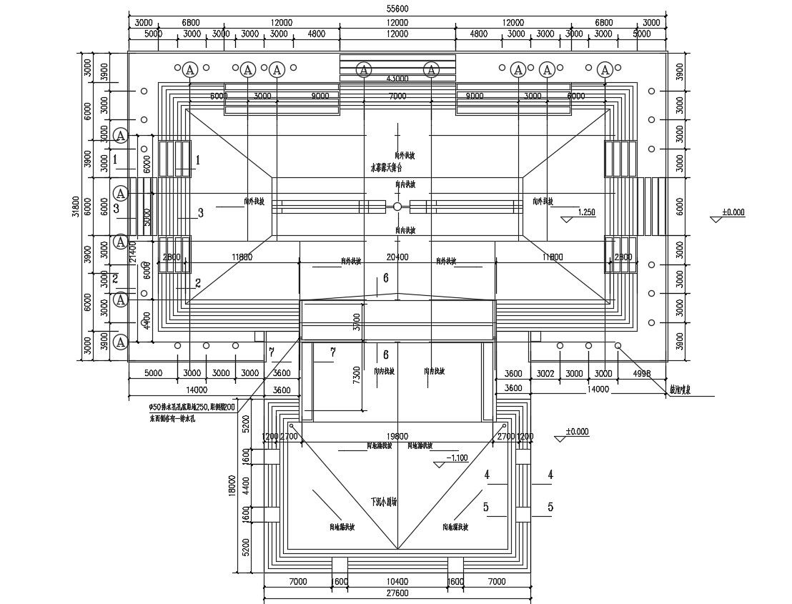 Water Curtain Open Stage Plan DWG File; download free AutoCAD file of stage floor plan with dimension detail in AutoCAD format.