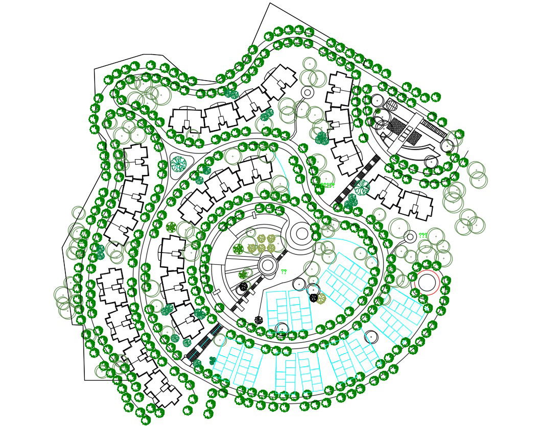 Download Master plan Of Twin Bungalow DWG File; this is the master plan of twin bungalow includes landscapes, plotting, driveway, and green patch, in AutoCAD format.
